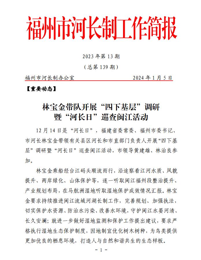 福州市河长制办公室简报(2023第13期)(总第139期)