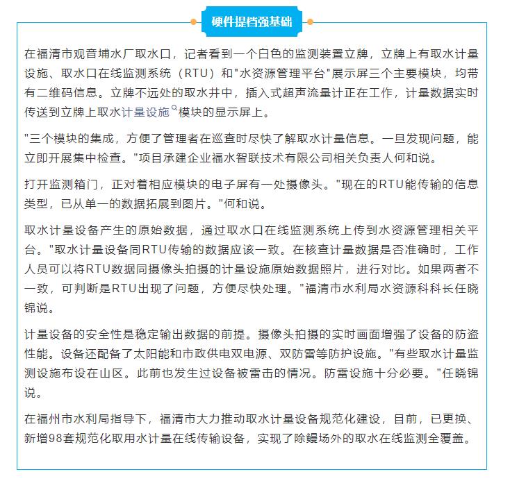 福州福清市强化取水计量质量管理显成效