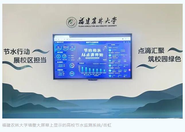 福建农林大学墙壁大屏幕上显示的高校节水监测系统/岳虹