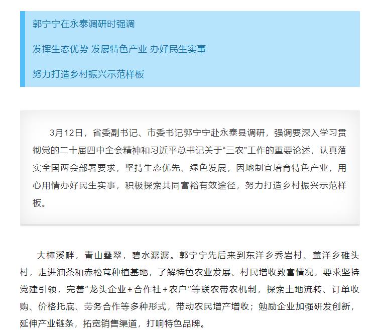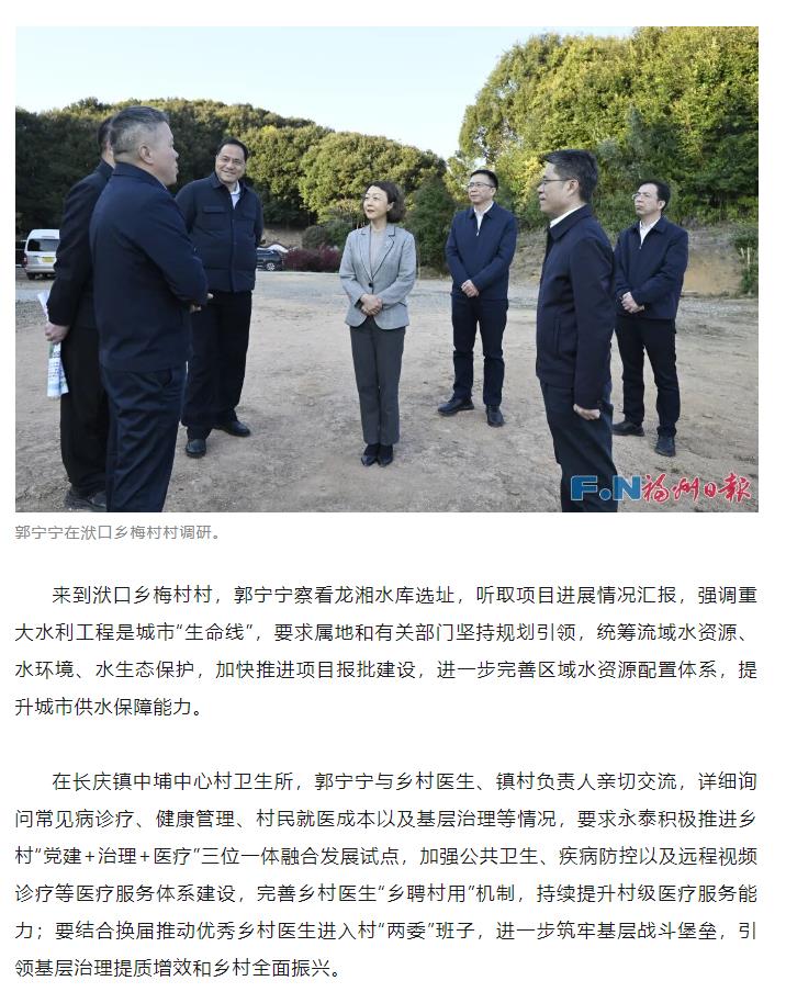 郭宁宁赴永泰县调研关注龙湘水库项目进展