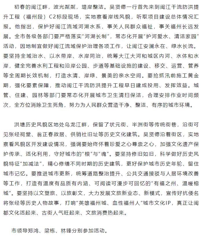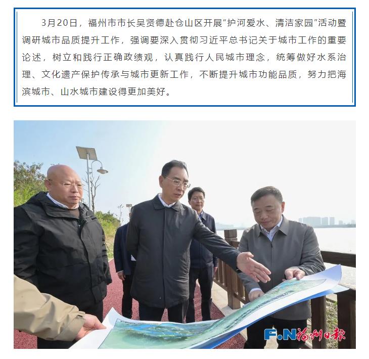 吴贤德市长赴仓山区开展调研工作 察看闽江干流防洪提升工程(福州段)