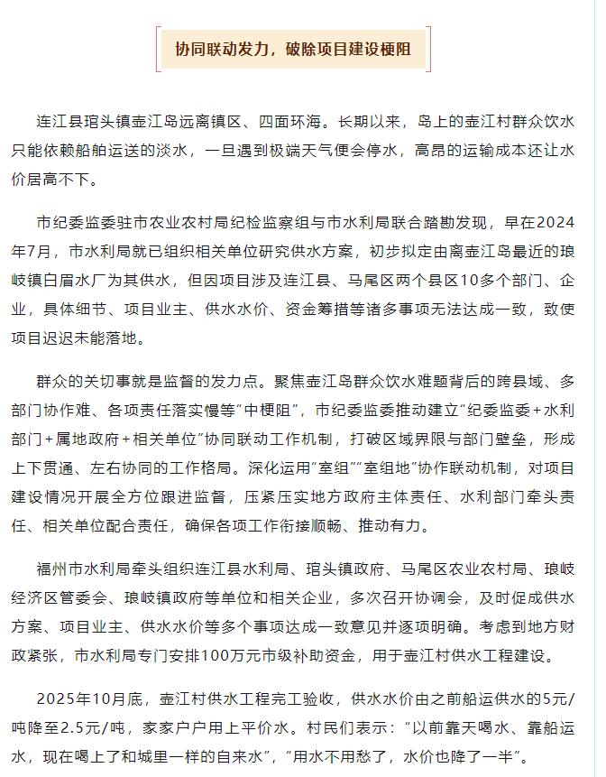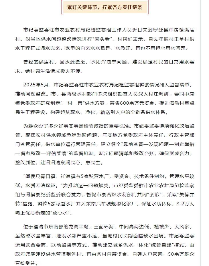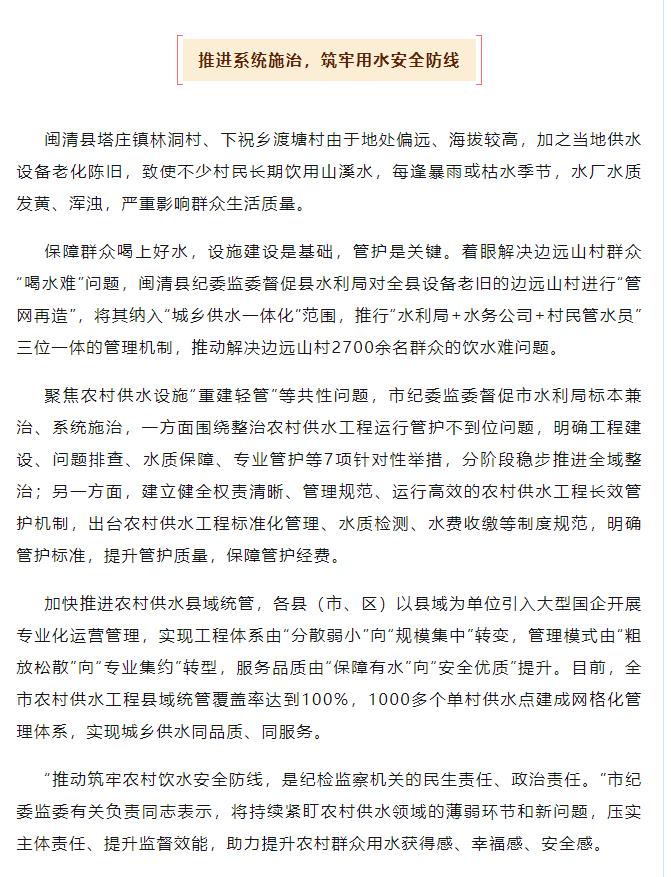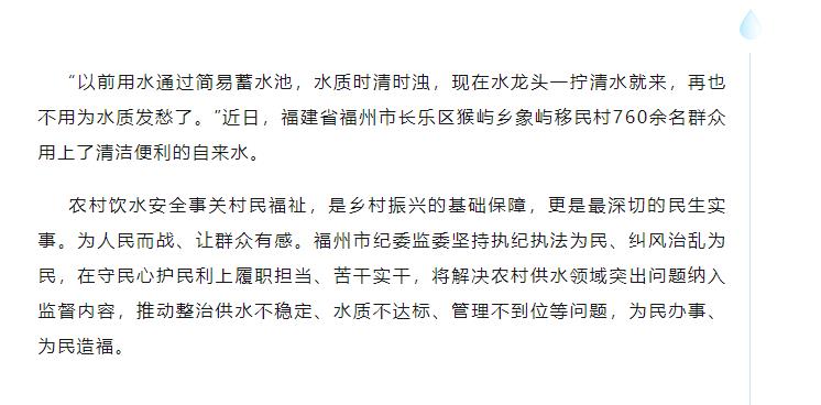 中国纪检监察报关注:福州深化农村供水领域问题整治 监督保障一泓清泉润泽民心