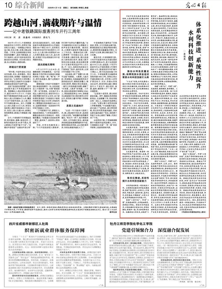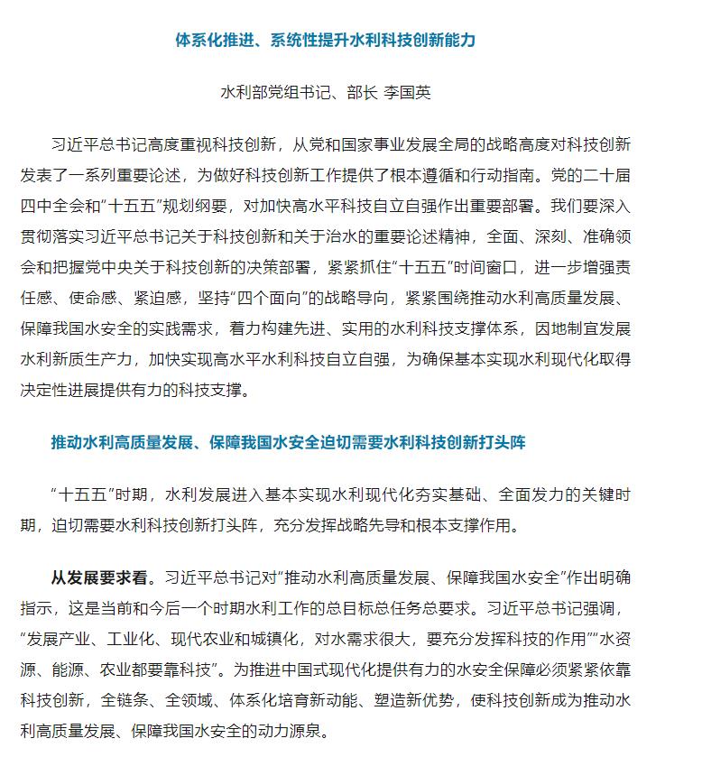 《光明日报》发表李国英部长署名文章:体系化推进、系统性提升水利科技创新能力