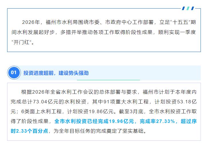 福州水利建设实现“开门红”一季度完成投资超19亿元