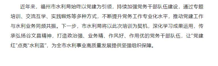 福州市水利局成功举办“红色领航砺初心,奋勇争先兴水利”党务干部素质提升培训班