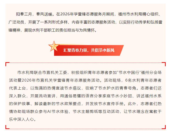 志愿同行 情暖榕城——福州市水利局开展“学雷锋”志愿服务月系列活动